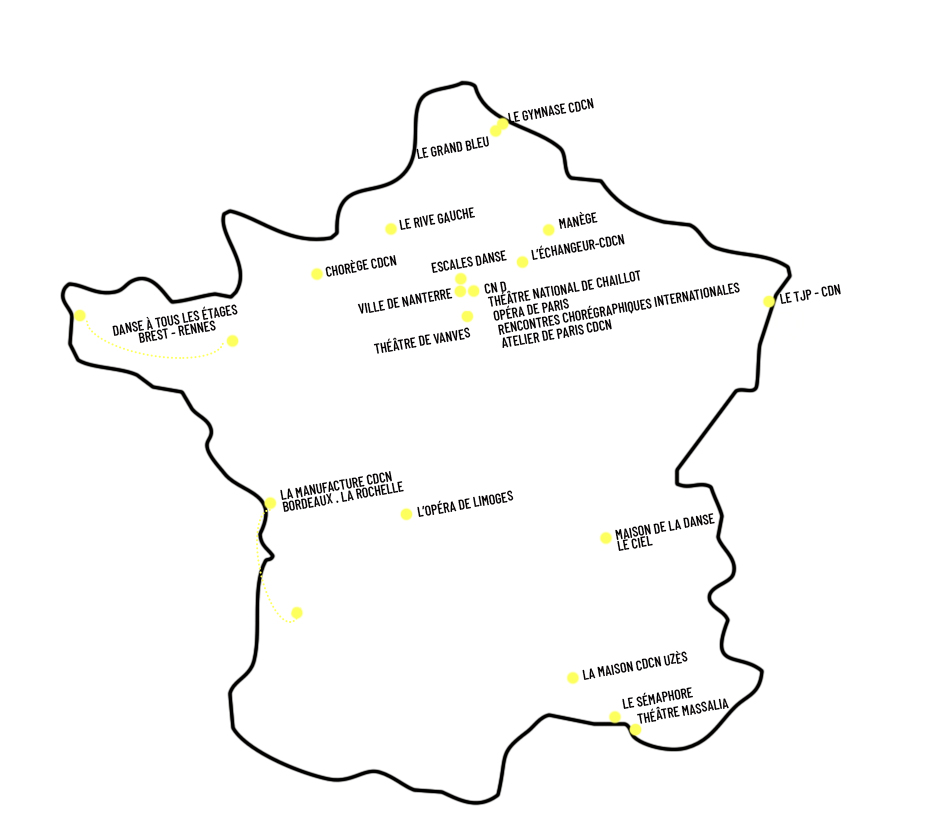 Le réseau, qui réunit 23 membres, représente la diversité des lieux et des professionnel·le·s du spectacle vivant, avec des théâtres labellisés, des lieux de danse, des associations de territoire ou bien encore des communes (cliquez sur la carte pour plus de détails).